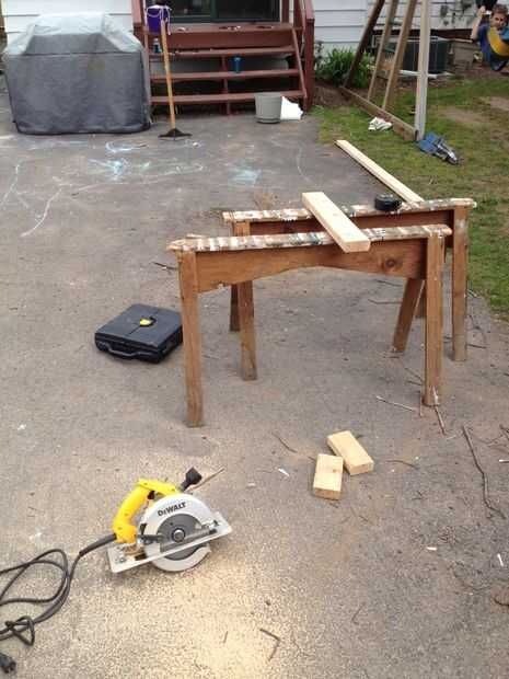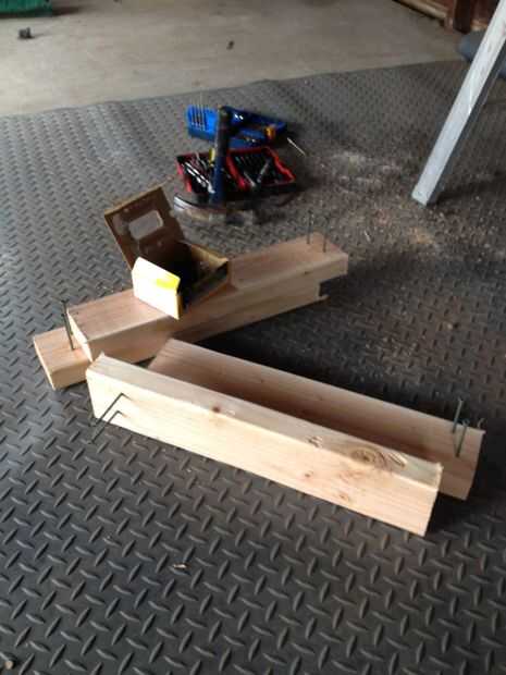 Básicamente consiste en cortar 2 x 4 madera en tiras de 18" y atornillado a la estructura del garaje. Eso es todo allí está a él.
