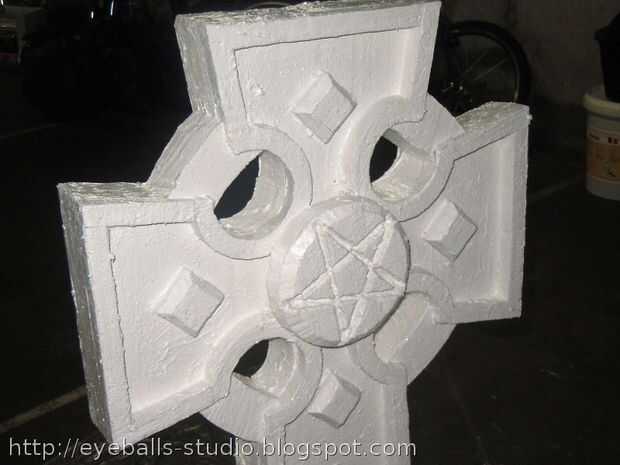 La espuma de poliestireno es recubierto con un compuesto conocido como monstruo de barro. Esto se hace mediante la mezcla de compuesto de yeso y pintura látex en una proporción 5:1. Para ser claros, esto significa yeso líquido compuesto! Si compras cosas en polvo, tienes que mezclarlo con agua primero. Compuesto premezclado tiene la ventaja de mantener más tiempo, pero es mucho más caro. Si utilizas en polvo compuesto, no hacer demasiado a la vez porque comienza a endurecerse muy rápido y se vuelve protuberante y duro de trabajar con.