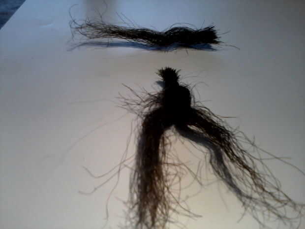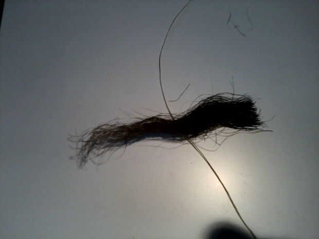 Destrenzar algún pelo y póngala en un lazo de cuerda entonces doblar el pelo sobre y atar otra vez. Luego empatar varias veces sólo para la buena medida y añadir una gota de pegamento resistente al agua en el extremo atado.