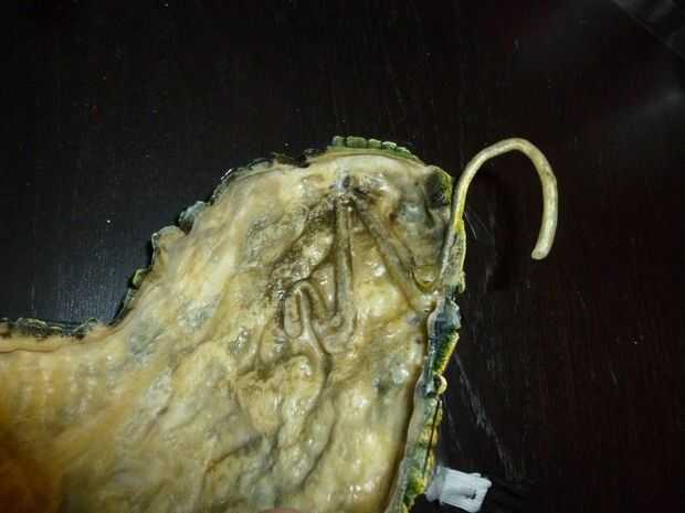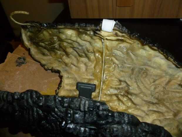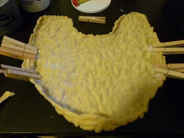 Utilicé unos trozos de un colgador para esto. Apliqué un par de capas de látex antes de vinculación en el lugar con más látex. El montaje de la correa de cuello también tiene un altavoz para producir un sonido de zumbido.
