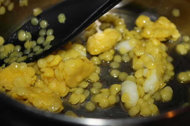 2. una vez que se derritan los aceites añadir los aceites esenciales y mezclar bien.