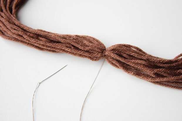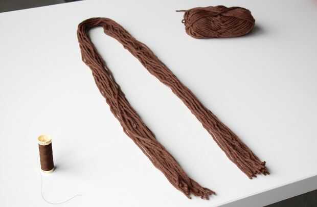 Quería bastante largas trenzas al lado, así que corte 20 pedazos de hilado de 55 pulgadas de largo cada una. 20 pedazos de hilo le dará un bigote tan grueso como la mía - por lo que si quieres un bigote más grande, más corte hilo para esta parte.