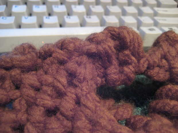 Por último, tejer en los extremos. Debe ser sólo unos pocos (dependiendo de si usted utiliza las colas para coser las correas). Me di cuenta de que, puesto que el frente es tan grande y descabellado, puede simplemente los extremos a través de unos puntos de sutura luego por la parte frontal de la armadura y cortado a la medida. Los extremos deben mezclarse bastante bien como.