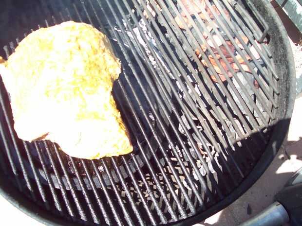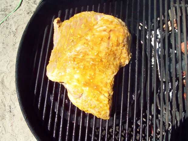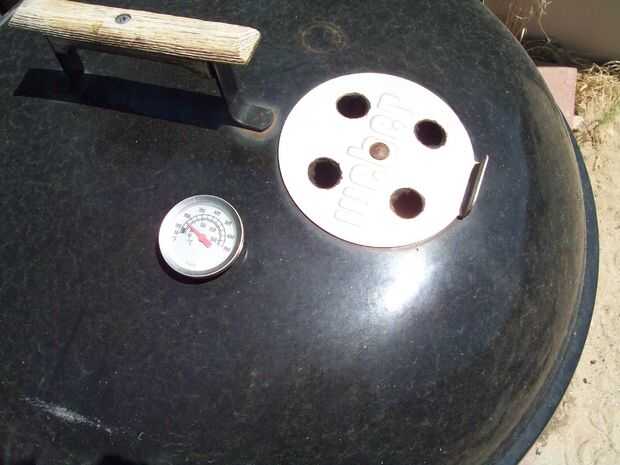 La cubierta y ajustar las rejillas de ventilación que desea la temp en la barbacoa a 250F más o menos sobre 20F. Esta es la parte más difícil, tendrás que jugar con las rejillas de ventilación cada 15-20 min más o menos hasta que se estabilice la temperatura. Una vez acaba comprobarlo cada 30-40 minutos para asegurarse de que la temperatura está en el rango deseado. Si por alguna razón empieza a caer que tenga que agregar más carbón (por ejemplo, en un día frío).