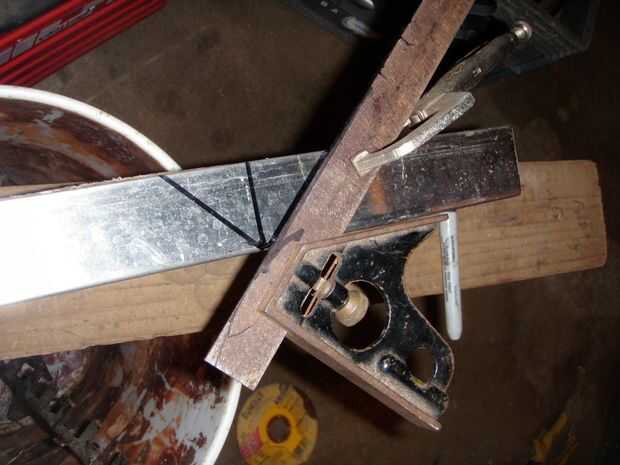 Una vez que se corta mi 45, me utiliza la regla de acero en el borde y marcado el interior del canal donde quería doblar. Porque la regla fue en mi línea y el área de la curva sí mismo acabaría por ser compensado un poco, hice los márgenes para.