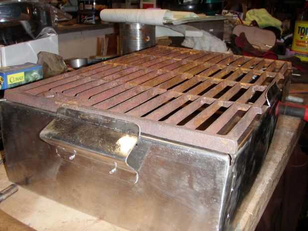 También he añadido algunos pies, un asa y una tapa que funciona como una bandeja para encender la barbacoa cuando esté en uso.