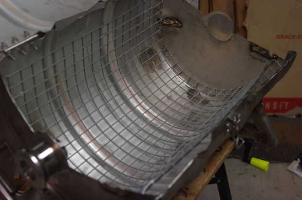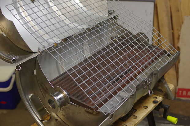 A continuación he añadido alguna malla en la parte inferior para evitar que el carbón sea directamente sobre la pared del barril. ¿El acero inoxidable se pone caliente, muy rápidamente, recuerda?