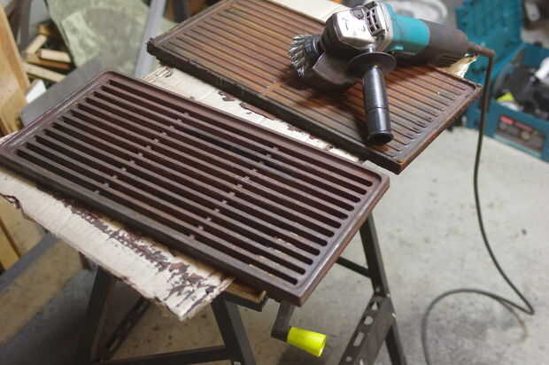 Tengo un un conjunto de aspecto viejo y muy malo de rejilla y la placa. Mucho de alambre cepillar después, parecía mucho más usable.