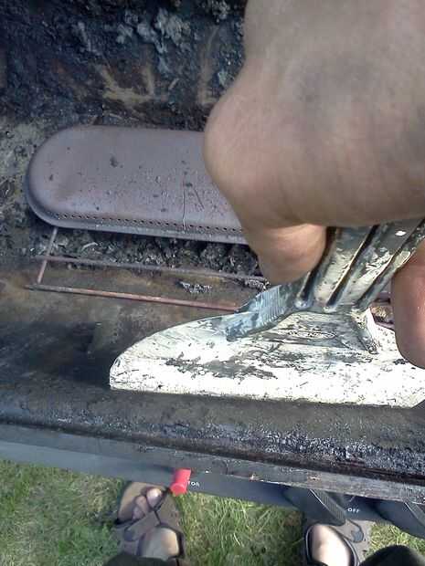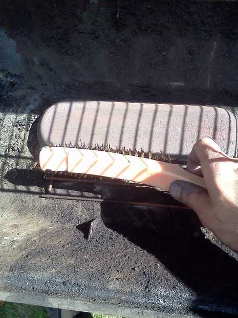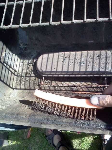 Así que la manera más fácil para iniciar este proceso es mover la parrilla en un área abierta sólo como medida de precaución y cubrir las rejillas con papel de aluminio. Encienda la parrilla (alta) y cierre la tapa durante 15-20 minutos, que esto va a dejar salir mucho humo pues está quemando toda la grasa apelmazada en interior a una ceniza fina. Al igual que la función de auto limpio en su estufa. Apague la parrilla y dejar enfriar unos minutos y luego te puede salir el cepillo de alambre y espátula e ir a la ciudad raspar de grasa todo lo que. Esto puede o puede no ser lo suficientemente bueno para sus estándares (es una rejilla). O puede salir el desengrasante y rociarlo sobre y dejarlo sentado por un rato luego lavarlo y limpiarlo fuera, totalmente libre de grasa. Yo sugeriría hacer esto si usted está planeando pintar el interior de la parrilla (próximos pasos).