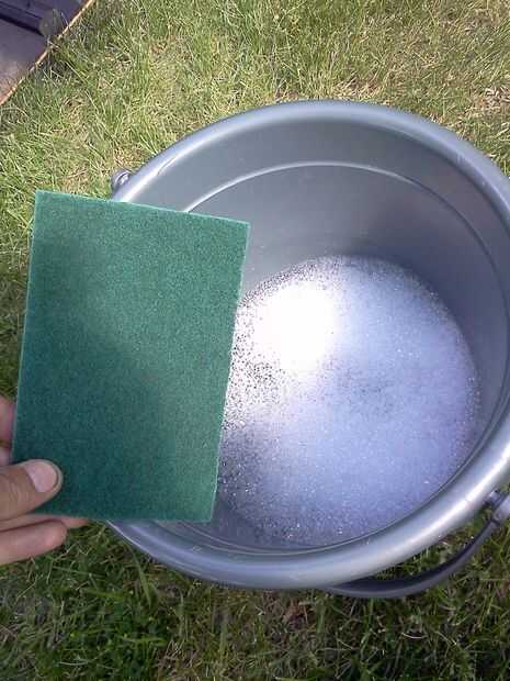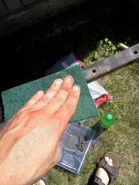 Limpiar, limpiar, limpiar, tomar un scotch pad brillante y jabón y agua para todo. El escocés brillante actuará como una lija suave así que tenga cuidado alrededor de rotulación y señalización, pero realmente ir tras cualquier moho manchas te veo. Si usted no obtener óxido de sacar el papel de la arena real para deshacerse de él. Manguera de jabón y dejar secar.