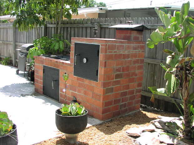 La puerta del asador y ahumador yo cortado a la medida después de hacer los marcos. Las mejores piezas para la parrilla y la campana de la chimenea eran cortadas a la medida de la gente buena en mi local fuente de metal. Encontré a alguien doblar la campana de la chimenea a través de mi metal suppy así.