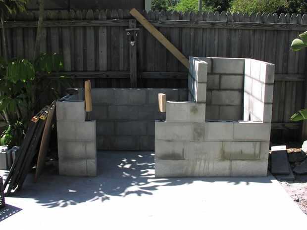 Se han establecido el curso siguiente 2, completar el lado para el fumador. Una vez más, cada curso 2 del bloque presentado, las cavidades fueron vertidas con cemento hidráulico en todos los lugares de refuerzo. Voy a esperar para instalar el segundo lentel hasta después de que he puesto todo el refractario dentro.