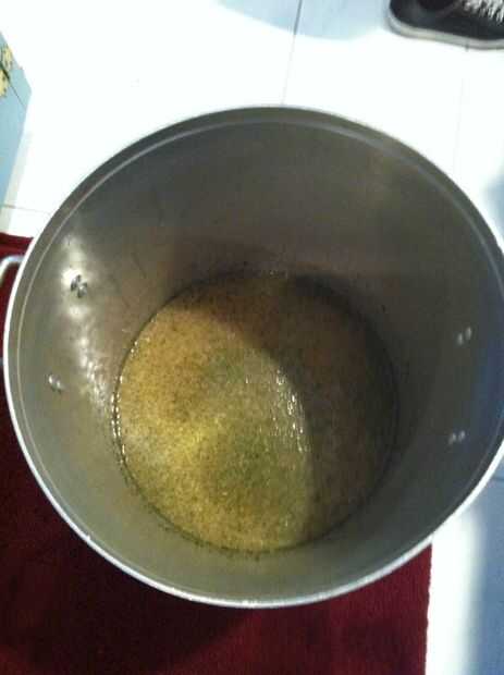 Agregamos jugo de manzana jugo naranja disuelto y más condimento. Jugo se agrega para evitar que la cabeza se seque no somos envueltos en papel de aluminio y bajó la cabeza en la olla.
