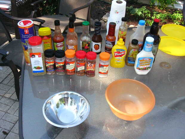 -Miel, franks salsa roja de Chile y la cal caliente, griego condimentos, polvo de pimienta de cayena y la salsa picante tailandesa.