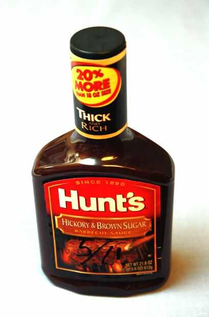 Para la salsa utilizo cualquier salsa barbacoa regular, algo como de Kraft o cazas. Se tarda aproximadamente la mitad de la botella.