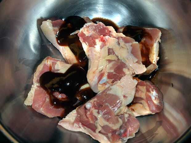 Desembale el pollo y ponerlo en un tazón grande. Añadir alguna salsa BBQ agregar los trozos de pollo y revuelva para que todas las piezas están cubiertas. No quite la piel, la piel mantiene los muslos de la quema cuando se ponen primero en la parrilla.