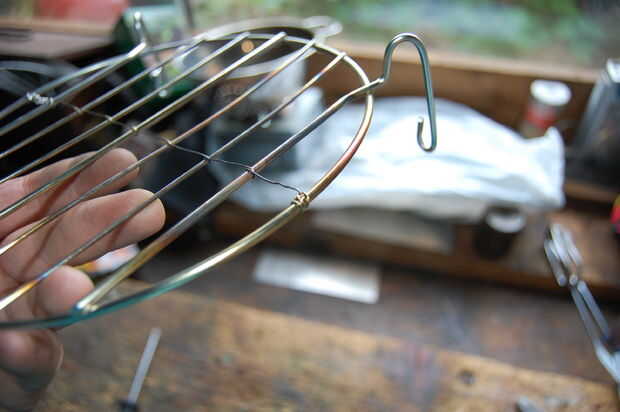 1. Uso de alambre de acero inoxidable, envolver entre las barras de la parrilla. Esto llenará la parrilla y dejará pequeño alimento caiga a través.