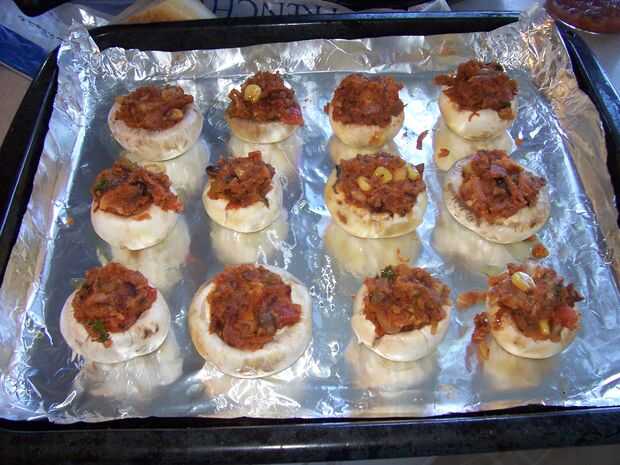 1. lavar las setas y eliminar los tallos. Trate de mantener las tapas intactas, por lo que llevará a cabo el relleno mejor.
