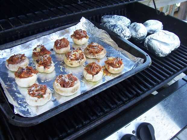 10. colocar en la barbacoa y dejar cocinar hasta tapas de un color más oscuro. Se cocinan muy rápido por lo que esto puede servir como un aperitivo rápido.