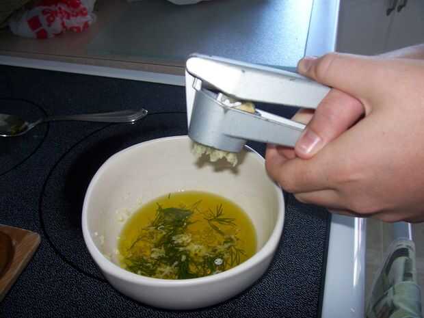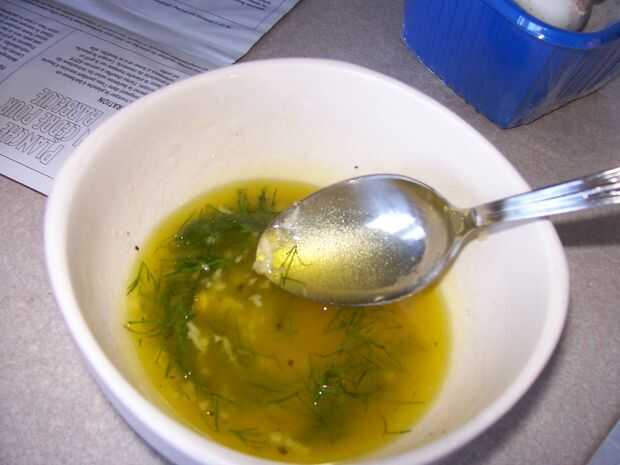 3. rasgar las hojas de una ramita de eneldo y agregue a la mezcla.