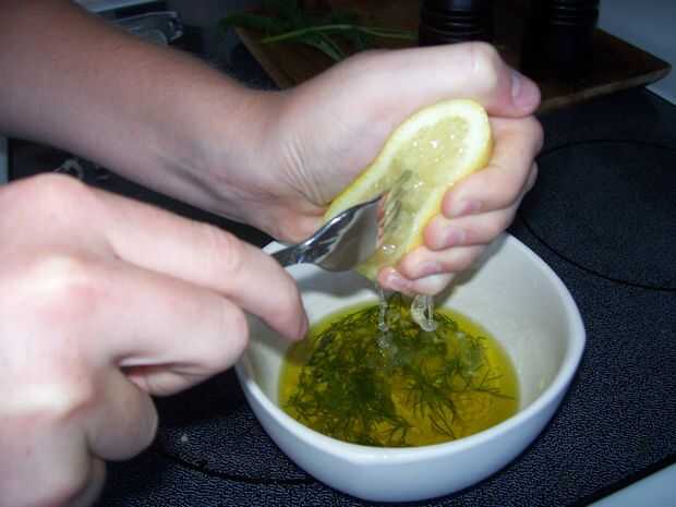 5. Apriete en mitad de un limón. Ayuda a meter en un tenedor y giro, mientras que está exprimiendo. Sacar las semillas.