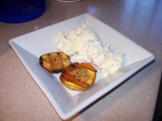 8. una vez que se haya derretido el azúcar moreno, ahora puede retirar los melocotones a la parrilla.
