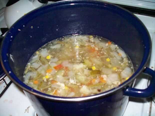 Una vez que han labrado toda la carne de la canal que queda aún mucho, sólo tiene que bajar un poco de ayuda. Despedazar el cadáver así que cabrá en la olla y cubrir con agua, poner a hervir y luego cocinar a fuego lento durante 15 minutos o menos. Apaga el fuego y dejar enfriar hasta que se pueden quitar los huesos de la canal. Coloque sobre una placa y extraiga la carne suelta ahora. Volver la carne a la olla y añadir las verduras, cocer a fuego lento durante unos minutos. Ahora tienes sopa de verduras de Turquía! Deje enfriar lo suficiente como para poner en recipientes y refrigere o congele.