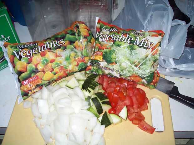 He utilizado verduras congeladas en la tienda y algunos frescos de nuestra huerta. Sólo "reglas" acerca de las verduras es ir fácil en la Brassicaceae (http://en.wikipedia.org/wiki/Brassicaceae) (familiares de col) como su sabor puede ser abrumador. Pensar en cosas que harían que una vegetariana sabrosa sopa o guiso.