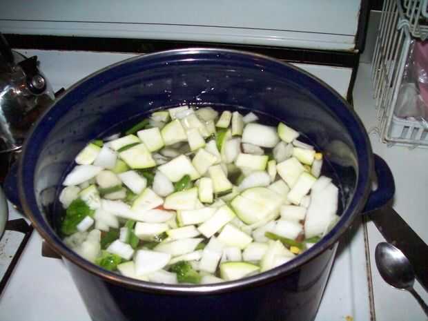 Colocar las verduras en una olla con el agua y poner a hervir, luego reducir a fuego lento, necesita dejar que algunos para obtener el sabor que necesitamos de las verduras, pero les no sobre cook cocine, entran en juego más tarde...