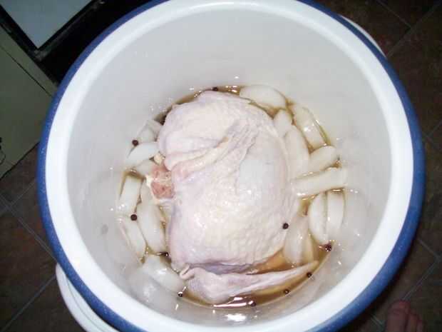 Cubrir con agua y hielo, revuelva otra vez. Asegúrese de que el pájaro esté completamente sumergido, utilice un peso si es necesario.