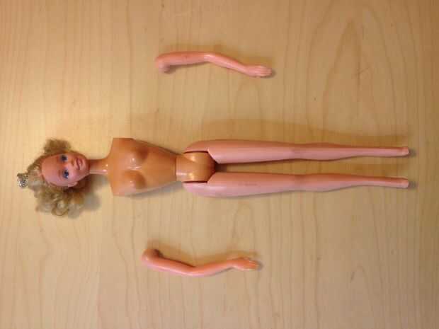 una vez más, había una Barbie en mi caja de"fixie". Última vez, Barbie tuvo cirugía de reemplazo de hombro. Esta vez, Barbie sirena tenía su mano derecha poco a un tiburón... o más probablemente un beagle.Esta es una solución bastante simple,