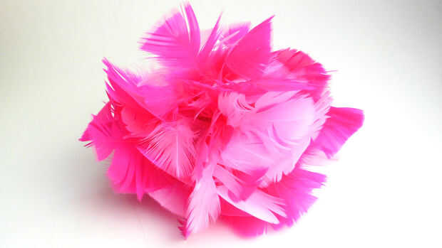 Repita este proceso para cada pluma. Empezar a colocar las plumas en el centro de la corona y moverse hacia fuera, en todas las direcciones hasta que se complete toda la cabeza. No tienes que llenar cada hueco con una pluma. Si los agujeros están demasiado juntos, como en la rayita, el omitir algunos y hacer cada uno o cada cuarto otro en su lugar.