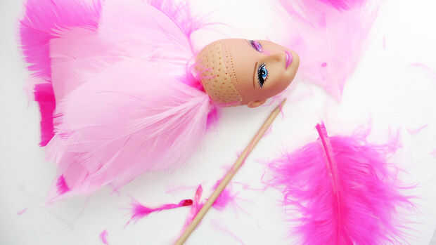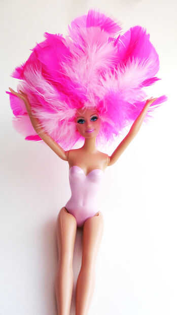 Para el nuevo look de Barbie, iré para corista de Las Vegas. Eso significa un montón de plumas.