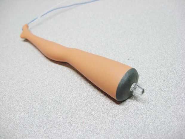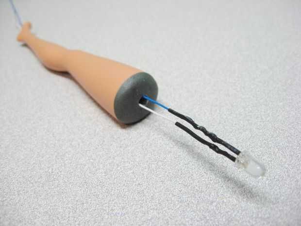 Había conectado dos cables al LED y pescaban los cables a través de la pierna y tira de ellas suavemente hasta que el LED estaba sentada perfectamente en la parte superior de la pierna.