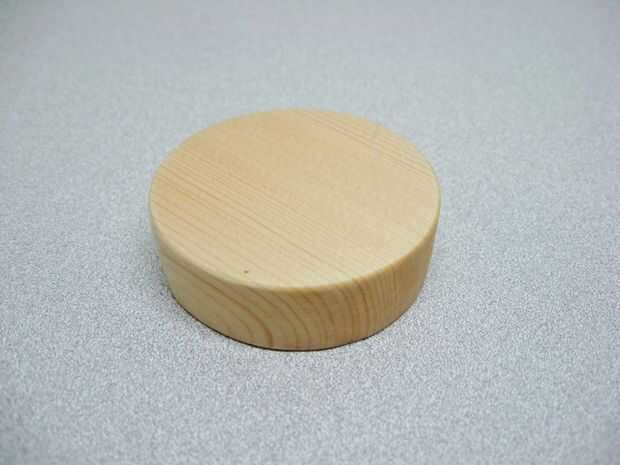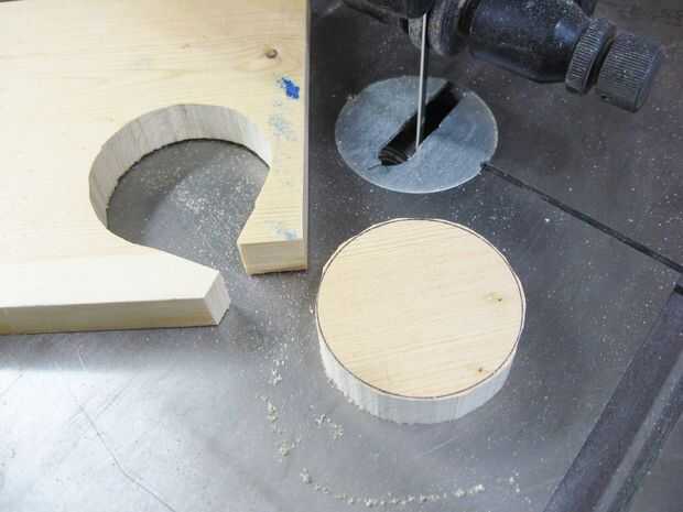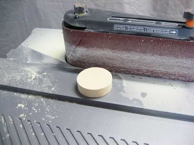 La base fue hecha de una pieza de pino de chatarra. Cortar un círculo áspero 2 1/4" con una sierra de banda y luego lijarlo perfectamente redonda y lisa con mi lijadora de husillo/banda oscilante.