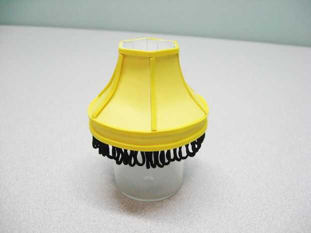 Esta impresa en cartulina y utilizar adhesivo en aerosol para fijar un trozo de tela de poliéster amarillo a la parte trasera, sin imprimir. En retrospectiva es overkill y recomiendo sólo la impresión de la plantilla en papel amarillo, si es posible o simplemente pintura amarillo u oro después de que esté montada.