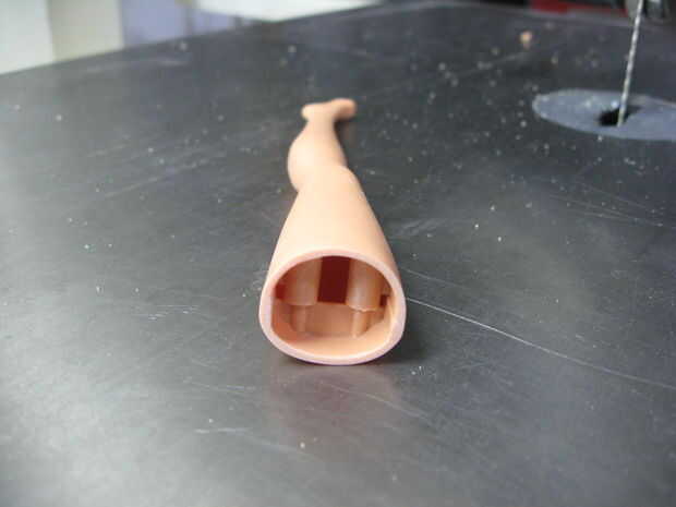 Recorte la parte superior de la pierna y la arena ligeramente para quitar cualquier fresas con papel de lija de grano 220.