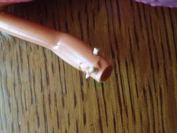 Taladrar dos orificios de compensación más o menos perpendiculares y me inserta palillos de dientes en ellos. Recortan los escarbadientes para proporcionar una base sólida para la Sugru agarrar a.
