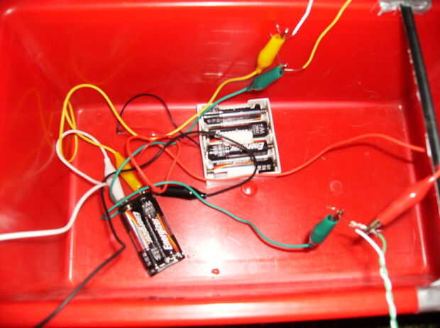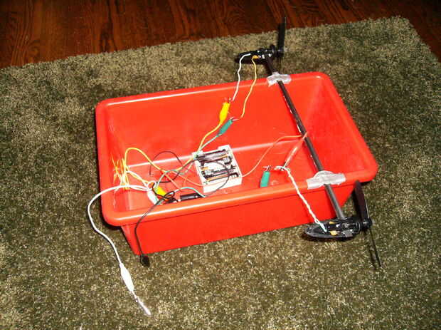 esto es un barco que hice de una caja de plástico, algunos motores de un avión de control remoto y algunos clips de cocodrilo. Puede acelerar a lo largo de una piscina o un lago a una velocidad relativamente rápida, debido a las baterías 6AA. Los motores se mantienen en la caja por una barra de metal, en una carpeta colgante, y se mantuvieron a la varilla por los imanes en el motor. La barra se lleva a cabo al barco por cinta adhesiva. Se hizo fácilmente en 15 minutos y fue hecha sin ningún costo adicional a mí mismo como tuve las piezas pues ahí.