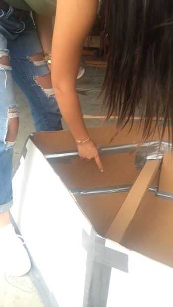 Crear el barco. Cortar la base y dejar unas pocas pulgadas (dejamos 10) alrededor de los lados y doblar para arriba. Una vez que ha hecho esto, puede añadir una capa extra de las paredes en el interior. Entonces, si usted quiere, corte otra base, un poco más grande que la original y añadir a la parte inferior. A partir de ahí, debe haber un espacio extra alrededor de los lados de la parte inferior, y se puede agregar más capas de la pared en el exterior. Conducto de cinta el fondo todo seguro y todo fuera así. Dejamos el interior sin explotar. Luego, para mayor estabilidad, enrolla un pedazo de cartón y colocado en frente del interior del barco.