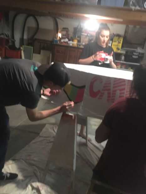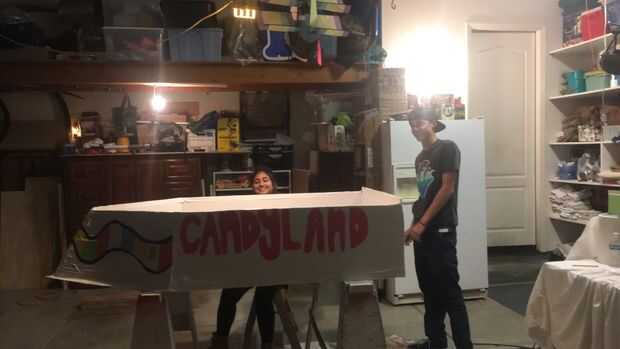 Pintamos nuestro tema, Candy Land, con pintura brillante látex de Home Depot. En primer lugar, Pintamos el interior de los blancos barco blanco, entonces decidida conducto cinta exterior para guardar pintura. Luego, pintamos nuestros diseños en el barco.