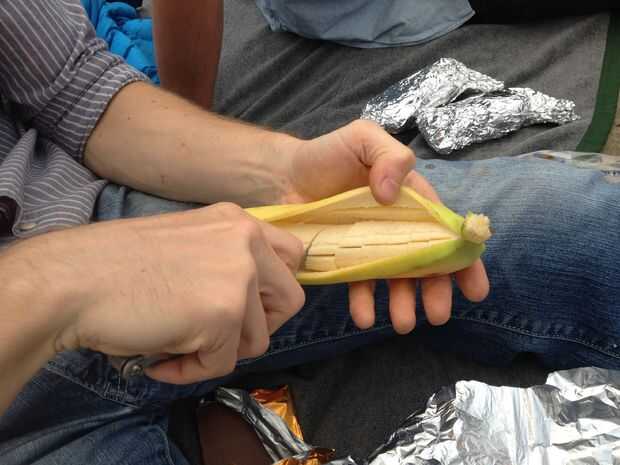 este es un postre muy dulce y sabroso para si no has comido suficiente costillas de la barbacoa!Paso 1: ingredientes Te necesita:de plátanomanteca de cacahuetemielmalvaviscosun buen dentistaPaso 2: bananapeeling y corte Quitar un lado de la bananpeel