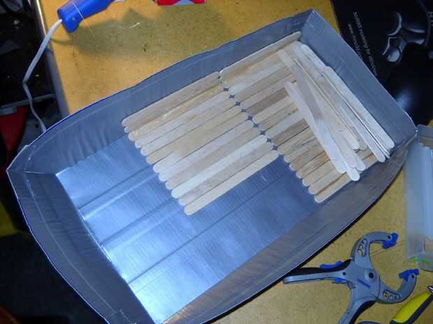 Primera salida en la parte posterior de la embarcación y el trabajo hacia adelante pone 8.metal y arranque pegado al llegar hasta el final de ellos van a lo largo iniciar ahora hacia los lados y cortarlos a