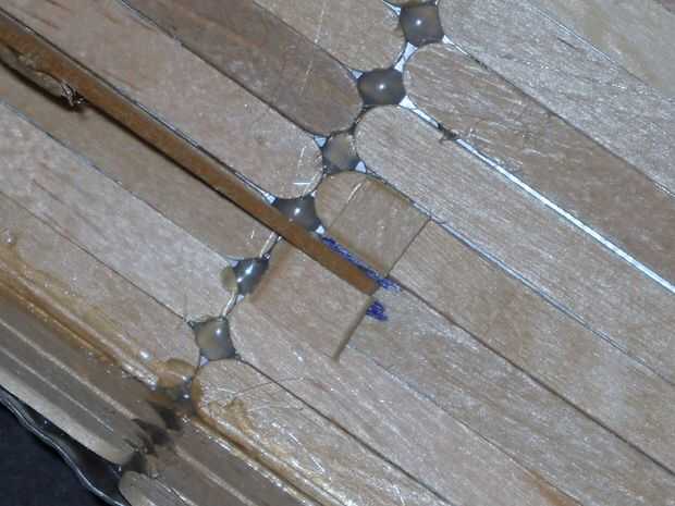 tercero, poner una gota de pegamento en los cuadritos para impermeabilización y y a lo largo de los bordes