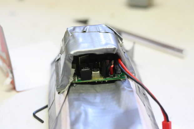 Esto tiene que ser la parte más difícil de todo el proyecto. Puño, medir cuán grande es el circuito RC, entonces tienes que hacer una vivienda para ella. Luego, pegue la carcasa hacia delante, entonces debes conectar los cables del motor con él. Luego, añada algo de espacio en el compartimento para la batería. Luego, tienen a prueba de agua. A continuación, tomar un trozo pequeño de espuma y cortar dos piezas que son 1 y 1/2 pulgadas de alto y 1 centímetro de ancho. Caliente pegar juntos, luego poner cinta aislante a su alrededor. Este pegamento en la parte posterior del barco. Si su receptor tiene una antena, toma de la antena y Envuélvala alrededor de la espuma en la parte posterior. Entonces conducto cinta adhesiva para que se mantengan. Entonces, estás listo para el agua! ¡ Disfrute!
