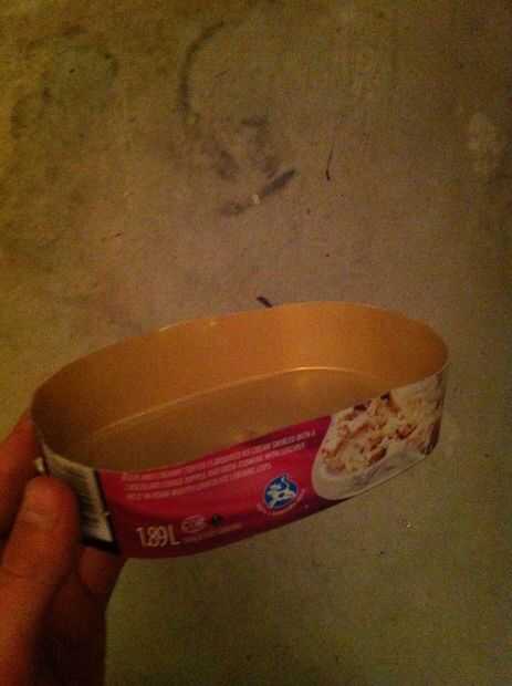 El corte de la parte inferior de un envase de helado a 1 a 2 pulgadas de la parte inferior.