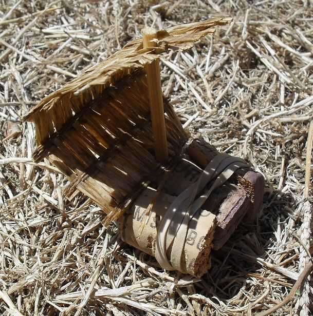 Usar elásticos para sujetar las piezas de corcho para mejorar el barco equilibrado en agua.