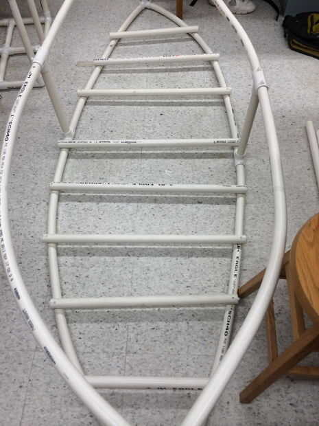 Tomar el resto de los tubos de PVC y cortadas a las longitudes que se ajuste en todo el barco. Que sujete, perfore un asimiento a través de la estructura y el conector cruzado y luego poner una atadura a través de él.