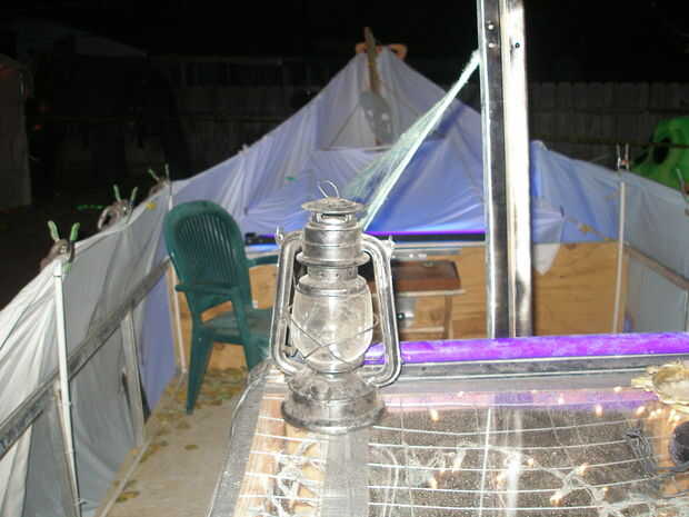 (Volteadas 1 pulgada de la hoja, entonces pellizca algunos de bajo y les grapadas por lo que era como un bolsillo de la barra de cortina)