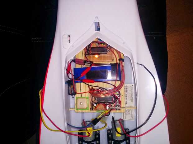 Con el tercer prototipo, cada vez que enciende los motores, la brújula cambiaría hasta diez grados a la izquierda. Claramente hubo algunas interferencias. Me di cuenta de que esta interferencia tiene exponencialmente más pequeña como me mudé el piloto automático hasta el barco, así que decidí simplemente avanzar la brújula.